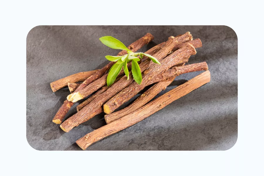Licorice Root aids in appetite control and is rich in flavonoids, helping combat obesity.